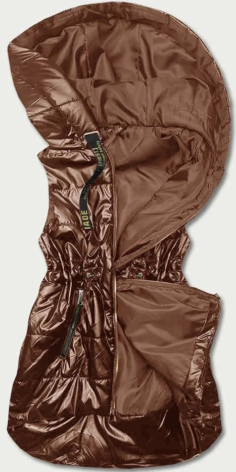 Lesklá vesta v karamelové barvě s kapucí (B8131-14)
