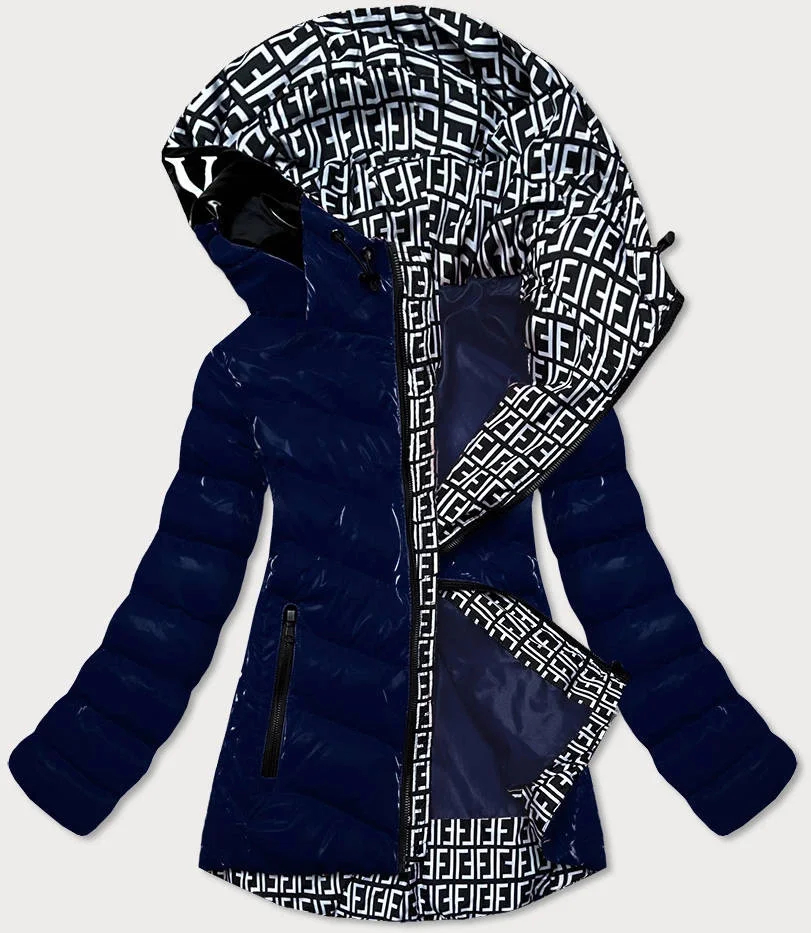 Světle modrá lesklá dámská bunda s ozdobnou podšívkou (xw810x)