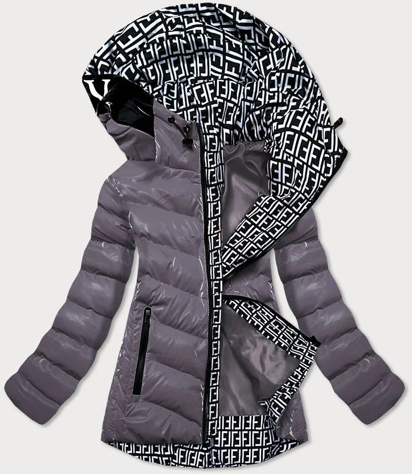 Šedá lesklá dámská bunda s ozdobnou podšívkou (xw810x)