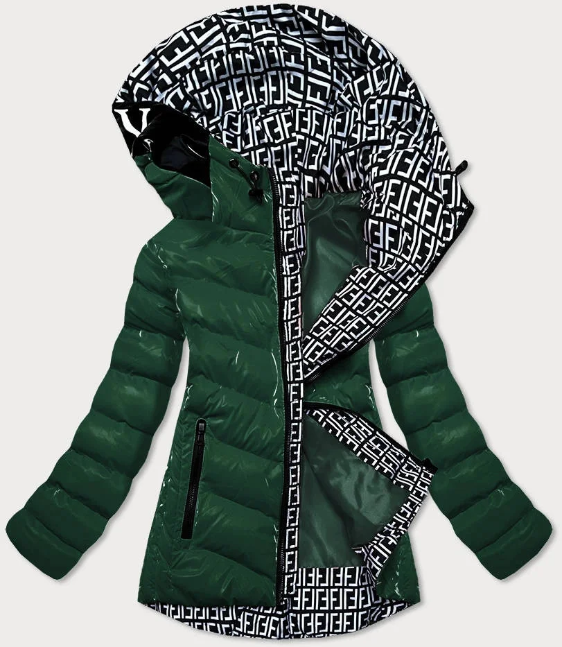 Zelená lesklá dámská bunda s ozdobnou podšívkou (xw810x)