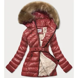 Lesklá zimní bunda ve vínové bordó barvě s mechovitou kožešinovou podšívkou (w674)