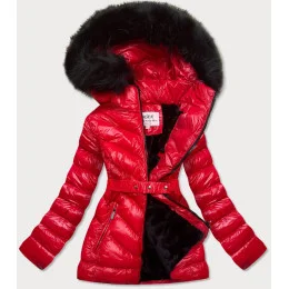 Červená lesklá zimní bunda s mechovitou kožešinovou podšívkou (w673)