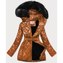 Lesklá zimní bunda v karamelové barvě s mechovitou kožešinovou podšívkou (w756)