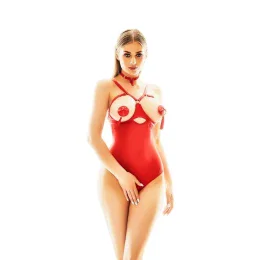 Pokud chcete od spodního prádla víc než jen hezký vzhled, toto body by mohlo být přesně to, co hledáte. Červené, s otevřenými košíčky, otevřeným rozkrokem a fenomenálně zvýrazněným spodkem. Není pochyb: je to prostě sexy! Ramínka ve výstřihu lze nastavit podle potřeby. Tkanina je měkká a pružná. Zadní část se pohodlně zapíná vzadu. Bradavky nejsou součástí sady. Složení: 80 % polyamid, 20 % elastan.