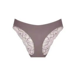 Dámské kalhotky Tai středního střihu s vyšším pasem, navržený bezešvou technologií a s měkkým, hladkým elastickým pasem pro pocit druhé kůže. Tyto kalhotky jsou vyrobeny z měkké krajky a krémového, na dotek sametového mikrovlákna, částečně recyklovaného.