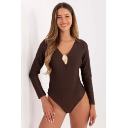 Elegantní body standardní délky vyrobené z převládající směsi viskózy a polyesteru zajistí pohodlí a dokonalé přizpůsobení postavě. Model se vyznačuje hladkou strukturou materiálu s jemným, dominujícím vzorem, který podtrhuje jeho jedinečný charakter. Dlouhé rukávy dodávají celku eleganci a výstřih je zdoben kovovou aplikací a jemným roucháním, co dodává rafinovaný akcent. Body se zapíná na praktické háčky, díky čemuž je nejen stylové, ale i funkční.