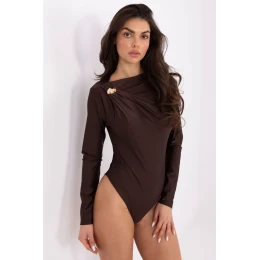 Elegantní body je stylovým návrhem pro ženy, které ocení eleganci a pohodlí v jednom. Model zaujme hladkým, dominujícím vzorem, který mu dodává nadčasový charakter a dělá ho ideálním jak k sukním, tak k elegantním kalhotám. Vyrobené z polyesterové směsi a elastanu, body je elastické, příjemné na dotek a perfektně se přizpůsobuje postavě. Standardní délka a dlouhý rukáv ho činí univerzální volbou pro mnoho příležitostí, a dekolt typu lodě subtilně zdůrazňuje ramena, dodávajíce celku eleganci. Zvláštní charakter mu dodávají záhyby na přední straně u pravého ramene, doplněné kovovou ozdobou, která přidává elegantní, bižuterní akcent. Body se zapíná na háčky, co zajišťuje pohodlí a stabilitu při nošení. Ideální na večerní výlety, elegantní příležitosti a stylové, propracované sestavy.
