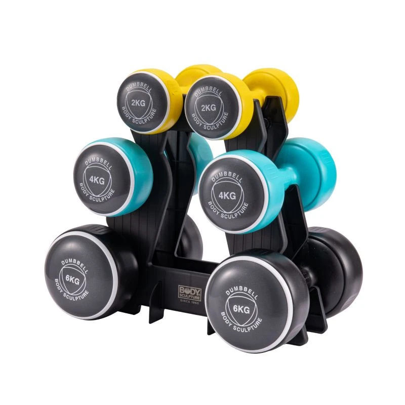 Sada činek s vinylovým povrchem je praktickým a estetickým řešením pro trénink doma, ve fitness klubu nebo tréninkové místnosti. Sada obsahuje robustní stojan a šest činek: po dvou o hmotnosti 2, 4 a 6 kg - celkem 24 kg zátěže, což vám umožní postupně zvyšovat intenzitu cvičení a přizpůsobit si trénink vlastní úrovni.