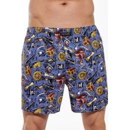 Pánské boxerky ušité z kvalitní vzorované bavlny. Pohodlný elastický pás lemovaný bavlnou. Zapínání na knoflíky. Baleno v krabici.