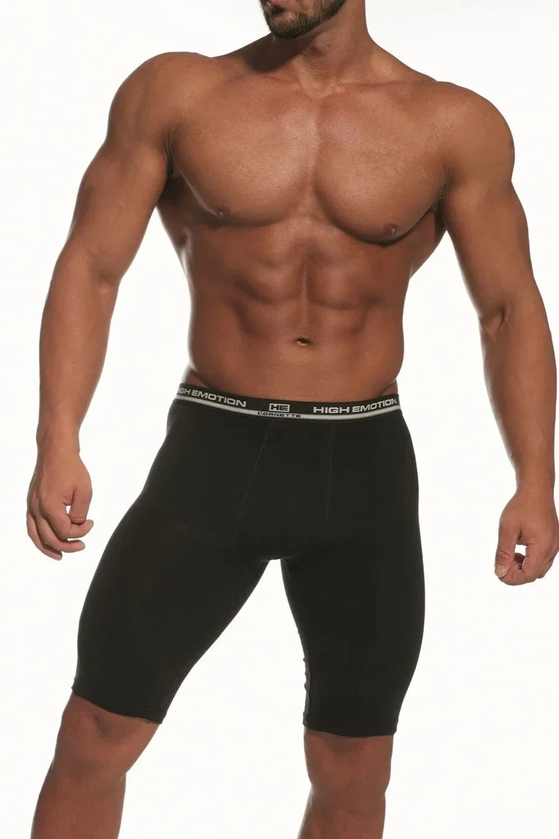 Dlouhé boxerky z řady High Emotion. Ideální pro chladnější dny. Pohodlné, jemně zdůrazňující tvar mužského těla. Kvalitní tkanina, široký elastický pas, anatomický střih a ploché švy zajišťují naprosté pohodlí. Specializovaná konstrukce zajišťuje plnou volnost pohybu. Boxerky jsou baleny v estetické kartonové krabičce.