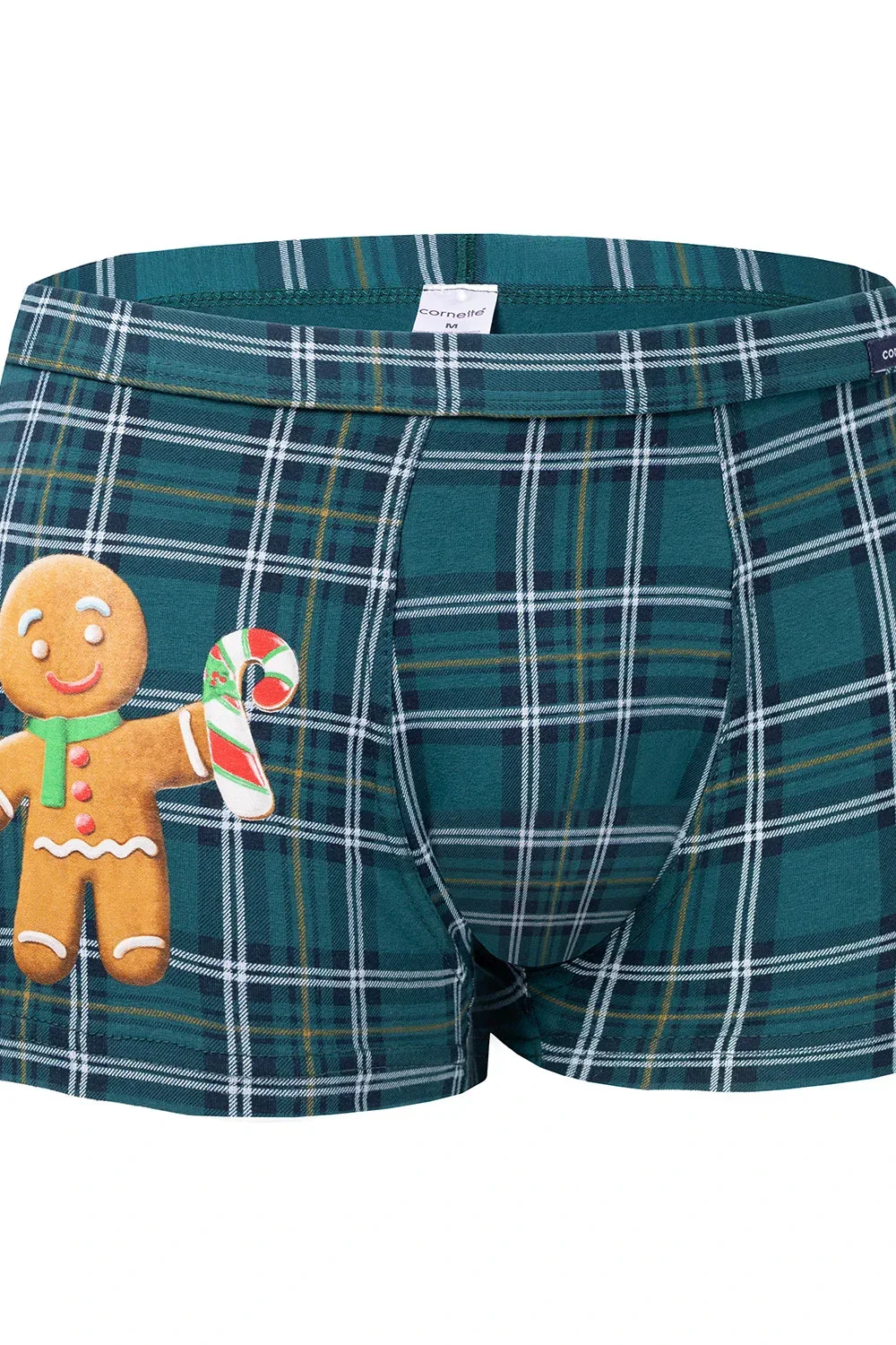 Pánské vánoční boxerky s veselým potiskem na stehně. Pozadí boxerek tvoří slavnostní zelená a tmavě modrá kostka. Potisk na nohavici tvoří tolik oblíbený perníkový dort. Tyto boxerky jsou zajímavou nabídkou jedinečného pánského spodního prádla pro ty, kteří mají smysl pro styl, a zároveň pro ty, kteří jsou sebevědomí. Pohodlné boxerky vděčí za své vlastnosti elastickému materiálu a také preciznímu zpracování. Ploché švy jsou šetrné k pokožce, beztlaková úprava nohavic zajišťuje maximální pohodlí a podpůrný pas je lemován měkkým materiálem, který je šetrný k pokožce. Boxerky jsou zabaleny v estetické krabičce.
