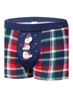 Pánské vánoční boxerky s veselým potiskem na klínu. Pozadí boxerek tvoří slavnostní červená, zelená a tmavě modrá kostka. Potisk tvoří hravý sněhulák s vesmírnou bambulí na čepici. Tyto boxerky jsou zajímavou nabídkou jedinečného pánského spodního prádla pro ty, kteří mají smysl pro styl, a zároveň pro ty, kteří jsou sebevědomí. Pohodlné boxerky vděčí za své vlastnosti elastickému materiálu a také preciznímu zpracování. Ploché švy jsou šetrné k pokožce, beztlaková úprava nohavic zajišťuje maximální pohodlí a podpůrný pas je lemován měkkým materiálem, který je šetrný k pokožce. Boxerky jsou zabaleny v estetické krabičce.