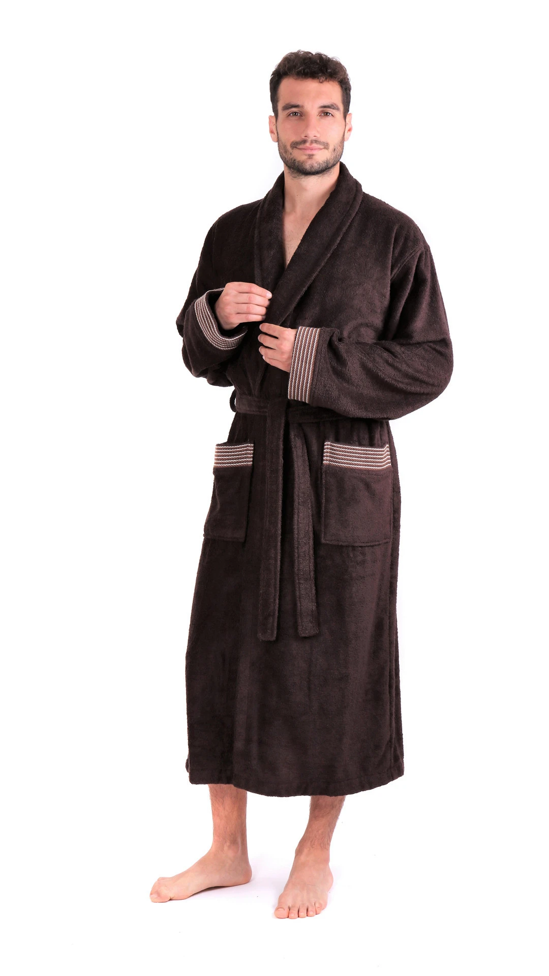 kteří oceňují kvalitní materiály a perfektní zpracování. Vyrobený z příjemné bambusové viskózy, materiál je lehký, hebký na dotek a skvěle odvádí vlhkost. Župan má klasický elegantní střih se šálovým límcem. Ozdobné bordury na rukávech a kapsách dodávají modelu decentní designový akcent. Boston je ideální volbou pro perfektní osušení po koupeli doma i v lázních nebo wellness. Doplníte-li župan monogramem, získáte luxusní osobní dárek.