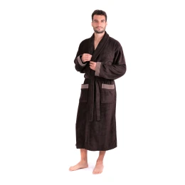 Luxusní župan Boston z bambusové viskózy se šálovým límcem a elegantními bordurami na rukávech a kapsách.