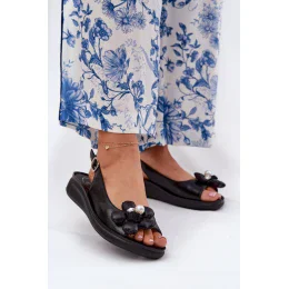Dámské sandály značky Jezzi. Vyrobené z vysoce kvalitní ekokůže. Umístěné na jemném klínku, poskytují stabilitu a pohodlí během nošení. Tento model je vyznačen materiálovým, ozdobným květem, který dodává jedinečný šarm. Zapínají se na nastavitelný popruh se sponou, který zaručuje ideální přizpůsobení noze. Tento elegantní střih skvěle doplní mnoho stylizací s šaty a kalhotami. Určitě byste je měla mít!