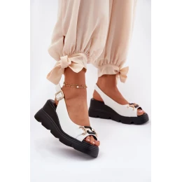 Dámské sandály vyrobené z vysoce kvalitní přírodní kůže jsou kombinací elegance a pohodlí. Usazené na platformě a klínu, zajišťují pohodlí a stabilitu po celý den. Vpředu se nachází jemný ozdobný prvek, který jim dodává mimořádný charakter. Měkká stélka zajišťuje pohodlné nošení a zapínání na přezku s nastavitelným páskem umožňuje dokonalé přizpůsobení k noze. Tyto sandály jsou vynikající volbou do letních stylizací, ideální na různé příležitosti.