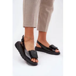 Dámské sandály vyrobené z přírodní kůže, osazené na platformě, jsou stylovým návrhem na horké dny. Tento model je charakterizován ozdobou umístěnou vpředu, co mu dodává jedinečný charakter. Mají sponu s nastavitelným popruhem, co umožňuje ideální přizpůsobení noze. Měkká stélka zajistí pohodlí při nošení po celý den. Tyto sandály budou skvělou volbou pro letní outfity, spojující eleganci s pohodlím.