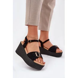 Dámské sandály vyrobené z ekokože. Usazené na klínu a platformě s imitací pleteného vzoru, poskytují pohodlí a stabilitu po celý den. Vepředu je ozdobná spona, která jim dodává jedinečný charakter. Model se zapíná na přezku umožňuje ideální přizpůsobení noze a měkká vložka zaručuje pohodlí. Tyto sandály budou skvělým doplňkem letního outfitu.