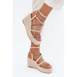 Dámské sandály z ekologického semiše, umístěné na klíně s platformou, spojují styl s pohodlím. Vyznačují se zdobenými pásky, které jim dodávají jedinečný charakter. Zapínají se na přezku, což zajišťuje skvělé přizpůsobení noze. Ideální na letní dny, skvěle ladí s šaty, sukněmi nebo kraťasy.