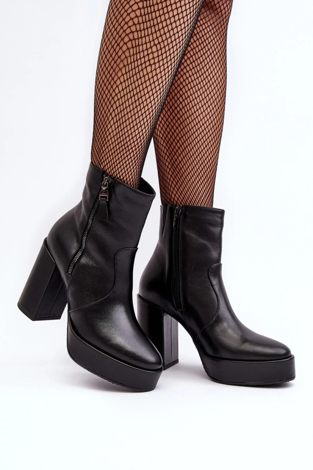 Dámské boty z přírodní kůže. Stojí na masivním jehlovém podpatku a platformě. Zaoblená špička. Zapínání na zip. Vyztužený podpatek. Stélka zateplená přikrývkou na boty. Rozhodně byste je měli mít!