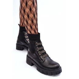 Boty ženy na plochém podpatku a platformě. Vyrobeno z kombinace eko kůže a tkaniny. Na přední straně jsou ozdobené malými džety pásky. Model zasouvací s elastickou podešví ve formě ponožky. Tepelná izolace kožíškem na výšce nohy. Ideální pro podzimní stylizace! Při výběru velikosti se řiďte tabulkou velikostí.