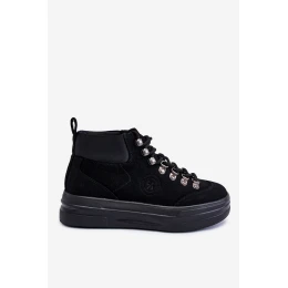 Holínky ve stylu Trapper jsou ideální pro chladnější dny! Byly vyrobeny z kombinace imitace semiše a syntetického materiálu. Mají klasické šněrování s kulatými tkaničkami. Model s dodatečně vyztuženou patou. Turistické boty jsou namontovány na silné masivní platformě. Ideální pro podzimní stylizace. Musíte je mít! Při výběru velikosti použijte tabulku velikostí.
