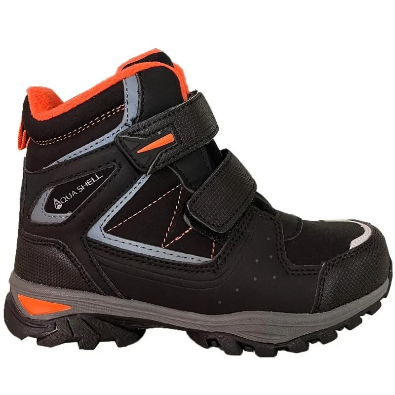 Dětské boty Lee Cooper Black/Orange LCJ-23-01-2060K Dětské boty Lee Cooper pro každodenní nošení nebo výlety do přírody. Středně široký, prodloužený design svršku s kombinací syntetických a textilních materiálů. Technologie Aqua Shell se dvěma vrstvami. Vnější vrstvy pomáhají chránit před větrem a snižují absorpci vlhkosti, zatímco vnitřní vrstvy udržují obuv v teple. Fleecová podšívka s extra pěnou v oblasti kotníku. Zapínání na suchý zip pro snadné obouvání. Gumová podrážka udržuje dobrou trakci na nerovném povrchu.
