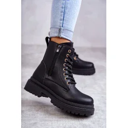 Krásné dámské boty z ekologické kůže. Jsou vybaveny pevným šněrováním v přední části a zipem pro snadné obouvání na boku svršku. Osazené na platformě a plochém podpatku s drážkami. Zateplený vnitřek s přikrývkou na boty. Klasický střih, ideální k mnoha outfitům, který byste měli mít ve svém šatníku!