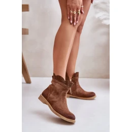 Tyto krásné dámské boty byly vyrobeny z kvalitního přírodního semiše. Stojí na plochém podpatku, díky němuž jsou mimořádně pohodlné a stabilní. Zapínají se na zip na boku svršku. Tento model má na horní části svršku ažurový prvek. Zaoblená špička. Boty, které musíte mít!
