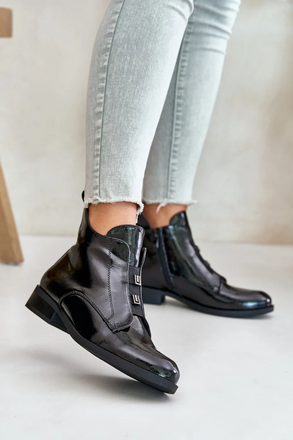 Dámské boty S.Barski z ekologické kůže. Osazené na plochém podpatku, který zajistí stabilitu na každém kroku. Zapínání na zip. Zateplené uvnitř pomocí deky na boty. Zaoblená špička. Ozdobné detaily a pružné pásky v přední části.