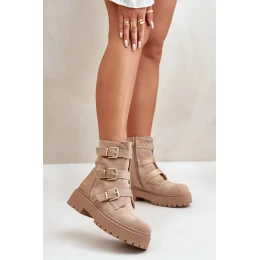 Stylové dámské kozačky jsou nezbytnou součástí vašeho podzimně-zimního šatníku. Tento model se vyznačuje pásky se zlatými přezkami a zdobením. Zapínají se na zip, který usnadňuje obouvání a vyzouvání. Vnitřní část je zateplená přikrývkou na boty. Skvěle se hodí k různým outfitům!