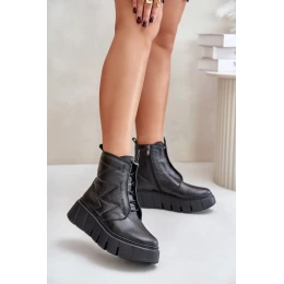 Dámské kozačky z přírodní kůže na platformě a podpatku jsou ideální volbou pro chladnější dny. Zateplené plstí poskytují teplo a pohodlí při nošení. Model se zapíná na zip, což usnadňuje obouvání, a díky elegantnímu designu se kozačky hodí jak ke každodennímu, tak i ke stylovějšímu oblečení.