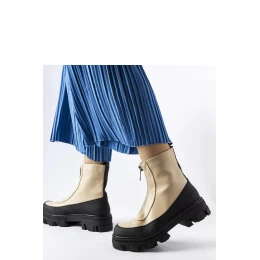 Bežové masivní kotníkové boty na zip Morley jsou skvělou volbou na chladné dny. Vyrobené z odolné gumy, jsou odolné vůči vlhkosti a ideální na zimu. Jejich výška nad kotníkem poskytuje dodatečnou ochranu proti chladu a kulatý špičatý nos dodává eleganci. Střední podpatek zaručuje pohodlí při chůzi a praktický zip usnadňuje obouvání a svlékání bot. Pečlivé šití zajišťuje trvanlivost a teplé vnitřní provedení zase zajišťuje, že boty jsou ideální i v nejchladnější dny. Jsou to elegantní, pohodlné a funkční boty, které se skvěle hodí na každý den.