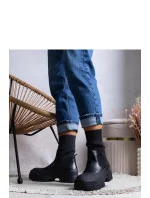 Kotníkové boty s masivní podrážkou jsou stylovým návrhem pro lidi, kteří ocení moderní design spojený s pohodlím. Vyrobené z kvalitní ekologické semišové kůže vypadají módně a efektně, a jejich pevná konstrukce se skvěle osvědčuje v denním používání. Kulatá špička poskytuje pohodlí, a masivní platforma o výšce 5 cm dodává charakter a opticky prodlužuje postavu. Střední část dosahuje 14 cm, pevně obepíná kotník, což zaručuje pohodlí a dobrou přiléhavost. Kotníkové boty jsou vybaveny praktickým zipem, který usnadňuje rychlé obutí a svlékání. Vložka z měkké látky zvyšuje pohodlí nošení. Nevytápěný model je ideální na přechodné období a každodenní outfit. Nové, moderní a funkční, skvěle doplní každý casual outfit.