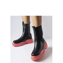 Černé botky na pestrobarevné podrážce Delebio jsou skvělou volbou pro zimní dny. Vyrobené z vysoké kvality gumy, jsou trvanlivé a odolné vůči vlhkosti, což znamená, že se skvěle hodí i do deštivých dní. Kulatá špička přidává jemnost a subtilitu tvému outfitu, zatímco plochý podpatek zajišťuje pohodlí i při dlouhém nošení. Vnitřní dokončení bot je teplé, chrání nohy před chladem a mrazem. Design těchto bot je moderní, stylový a chic, přitahující pozornost svým trendy vzhledem. Zapínání na zip usnadňuje jejich obouvání. Botky jsou skvělou volbou pro ženy, které si cení pohodlí a módního vzhledu. Vnější materiál je ekologická kůže a podrážka je růžová. Ideální doplněk podzimní a zimní šatníku.