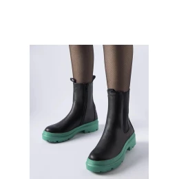 Černé kotníčkové boty s zelenou podrážkou Georgette jsou ideální obuv na chladné dny. Jejich výška nad kotníkem jim dodává moderní vzhled a vyrobené z gumy zajišťují odolnost proti vlhkosti a dešti. Díky nim si můžete užívat suchých nohou za každého počasí. Tyto botky jsou mimořádně módní a elegantní, skvěle doplňující každý podzimní nebo zimní outfit. Jejich kulatý nos dodává eleganci a zip usnadňuje obouvání a svlékání. Navíc jsou k dispozici za dostupnou cenu, což umožňuje vypadat stylově bez nutnosti utrácet majlant. Botky Georgette jsou také dostatečně vyztužené, takže nejenže vypadají stylově, ale jsou také teplé a pohodlné. Skvělá volba pro všechny, kteří hledají boty, které kombinují pohodlí, módní vzhled a dostupnou cenu. Ideální na podzimní a zimní sezónu!
