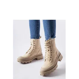 Bežové kotníčkové boty z ekokože Orson jsou skvělou volbou na chladnější dny. Jejich teplé vnitřní strana zajišťuje pohodlí a komfort při nošení. Navíc jejich moderní design je velmi stylový a dodá vám výjimečný vzhled. K dispozici za přijatelnou cenu, tyto botky jsou ideálním řešením pro každou ženu hledající módní boty, které nezatíží její peněženku. Vyberte si botky Orson, abyste se cítili stylově a pohodlně za každého počasí. Ekologická zamszová kůže, gumová podrážka v barvě bežecké, zapínání na tkaničky - to vše dělá tyto boty nejen stylové, ale také praktické. Ideální na podzimní a zimní sezonu.