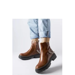 Hnědé botky s řetízkem Muqaddim jsou ideální volbou na zimu. Jejich výška nad kotníkem je dokonale přizpůsobí nohám, zdůrazňujícím jejich krásu. Kulatý špičatý nos dodává botkám jemnost a ozdobný řetízek dodává půvabný charakter. Pohodlné zapínání na zip usnadňuje obouvání a svlékání bot, šetří váš čas. Plochý podpatek zajistí stabilitu a pohodlí i při dlouhodobém nošení. Botky jsou vyrobeny z gumy, co je činí odolnými proti vlhkosti a dešti, chrání vaše nohy před chladem a nepříznivými povětrnostními podmínkami. Navíc jsou vystlané, poskytující teplo i v nejchladnější dny. Díky nim nemusíte mít obavy z mrazivých prstů! Tyto botky nejsou jen módním doplňkem, ale také velmi praktické. Skvěle se hodí k různým stylizacím - jak casual, tak elegantní. Přidejte trochu ženského šarmu do své zimní šatní skříně s těmito hnědými botkami Muqaddim!