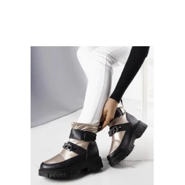 Zlaté sněhule s řetězem Ephraim jsou skvělou volbou pro zimní výlety mimo město. Svršek je vyroben z vysoce kvalitní ekologické kůže a nepromokavého materiálu, což zajišťuje maximální pohodlí nošení. Vysoká podrážka nejen přidává styl, ale také zaručuje odolnost a odolnost v těžkých povětrnostních podmínkách. Vnitřek boty je vybaven teplým kožíškem, což zajišťuje teplo i v nejchladnější dny. Sněhule mají uzavírání na suchý zip, co usnadňuje jejich obouvání a přizpůsobení. Velikost je standardní, takže doporučujeme zvolit svou běžnou velikost. Skvělé na podzimní a zimní měsíce.