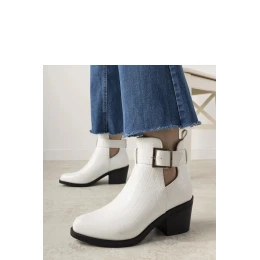 Bílé kotníčkové boty na podpatku se výstřihy Moderniso Model Moderniso jsou ideální obuví pro ženy, které si cení módní design a pohodlí. Botky jsou vyrobeny z materiálu imitujícího krokodýlí kůži, co jim dodává eleganci a originalitu. Botičky jsou nasazovací, a lze je přizpůsobit pomocí pásku kolem kotníku. Výstřihy na svršku jsou absolutním hitem tohoto podzimu! Velikostní řada je standardní, takže se při nákupu řiďte svou velikostí. Botky mají zateplení, co z nich činí ideální obuv na chladnější dny. Vnější materiál je ekologická kůže zam, zatímco podrážka je vyrobena z černého syntetického materiálu. Zapínání na zip usnadňuje obouvání a svlékání bot. Botky pocházejí z kolekce Podzim/Zima, což z nich činí skvělé doplnění podzimního šatníku. Originální design a pohodlí při nošení z nich udělají oblíbenou obuv každé ženy.