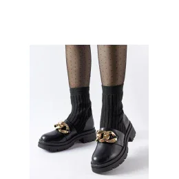 Černé ponožkové botky s řetízkem Giussago jsou ideální obuv na každou příležitost. Vyrobené z odolné gumy jsou odolné vůči různým povětrnostním podmínkám, a jejich pohodlná konstrukce na středním podpatku zaručuje pohodlí při nošení. Černá barva jim dodává eleganci a skvěle ladí s různými styly. Navíc řetízková ozdoba jim dodává jedinečný charakter, přitahuje pozornost a dělá je velmi stylovým prvkem každého outfitu. Tyto botky nejsou pouze praktické, ale také módní a díky atraktivní ceně jsou dostupné pro každého, aniž byste museli ustoupit od kvality a moderního vzhledu. Přidejte trochu elegance a třídy do své sbírky obuvi díky těmto černým ponožkovým botkám s řetízkem Giussago. Ideální na podzim a jaro.