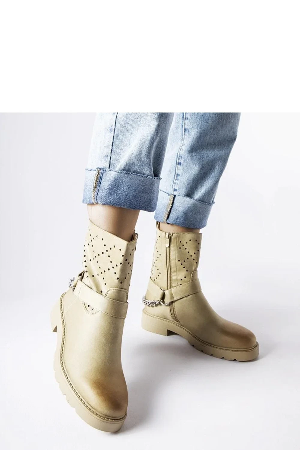 Zelené ažurové boty Procopio s řetězem jsou ideální volbou pro nadcházející podzim a zimu. Jsou vyrobeny z odolné pryže a jsou odolné proti vlhkosti a dešti, takže jsou ideální do drsnějších povětrnostních podmínek. Jejich šněrovací konstrukce zajišťuje celodenní pohodlí, zatímco prolamovaný vzor jim dodává jedinečný nádech, takže jsou velmi módní a trendy. Tyto boty jsou ideální jak pro každodenní styling, tak pro elegantnější příležitosti. Díky přidanému řetízku jsou nejen praktické, ale dodají vašemu stylingu také charakter. Zelená barva kozaček dodá vašemu šatníku svěžest a barevnost. Kozačky Procopio jsou nejen módní, ale také pohodlné a praktické. Jejich univerzální design z nich dělá dokonalý doplněk každého šatníku. Budou vypadat skvěle s džínami i s elegantní sukní nebo šaty. Ať už se jedná o jakoukoli příležitost, tyto kozačky budou skvělou volbou pro každou ženu, která si cení pohodlí a módního vzhledu.