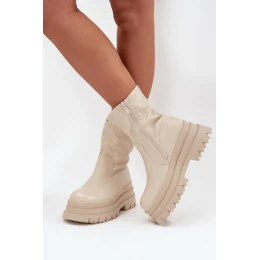 Boty pro ženy z ekologické kůže jsou skvělým návrhem na chladné dny. Umístěné na masivní platformě poskytují stabilitu a dodatečnou výšku. Zapínání na zip usnadňuje nasazování a zaoblené špičky jim dodávají decentní charakter. Vnitřek vyhřívaný koženým vložením pouze ve výši nohy zaručuje teplo a zároveň umožňuje pohyb. Určitě byste je měla mít ve své podzimně-zimní šatní skříni!
