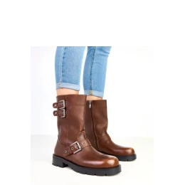 Stylové dámské kotníčkové boty vyrobené z vysoce kvalitní ekologické kůže, které se vyznačují efektními ozdobnými sponami, které jim dodávají charakter. Model má kulatou špičku a 23centimetrový svršek, který obepíná nohu a skvěle vypadá v městských stylizacích. Boty mají 3,5centimetrový podpatek, co zajišťuje pohodlí při nošení každý den. Praktické zapínání na zip usnadňuje obouvání a svlékání a vnitřek vybavený látkou zaručuje pohodlí. Chybějící podšívka znamená, že se model skvěle hodí do přechodného období. Jsou to univerzální kotníčkové boty s nádechem rockového stylu, které skvěle doplní každodenní a módní stylizace.