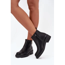 Dámské botky z ekokůže jsou elegantní a pohodlnou volbou na chladnější dny. Zapínají se na zip. Vnější část je vyztužená pro teplý pocit, zaoblené špičky a decentní podpatek dodávají botkám ženský charakter, zajišťují pohodlí a styl na každý den. Podrážka je zdobená zirkony. Stříbrný zip je ozdobný a nerozepíná se. Ideální pro každodenní outfit.
