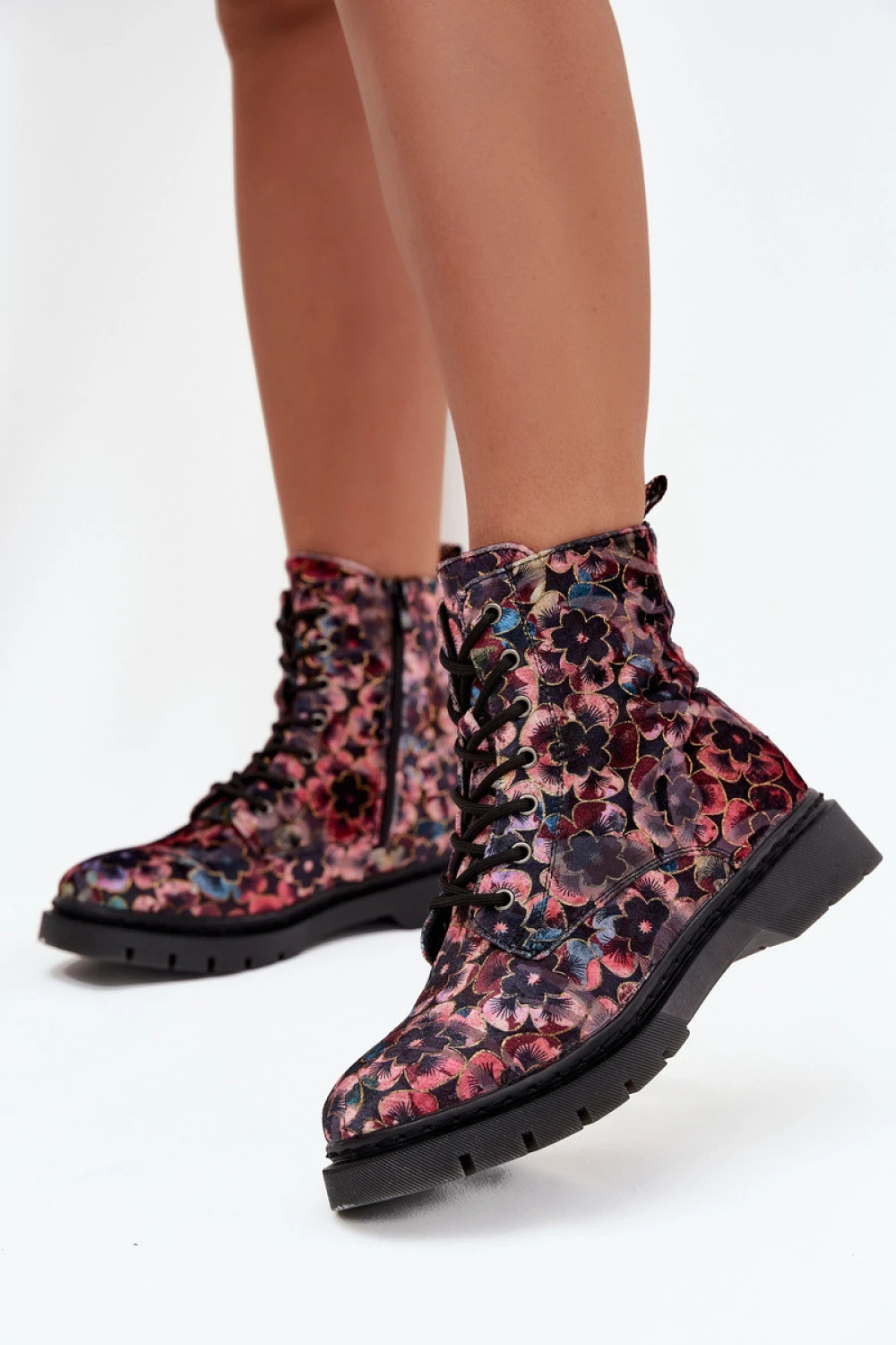 Botky značky Artiker jsou návrh, který přitahuje pozornost a zdůrazňuje individuální styl. Umístěné na ploché podrážce zaručují pohodlí a stabilitu během každodenního nošení. Model kombinuje praktické šněrování a boční zip, díky čemuž se boty snadno obouvají a přizpůsobují se noze. Vnitřek je vyložený, co zaručuje pohodlí a teplo v chladnějších dnech. Největším předností tohoto modelu je svršek zdobený mnoha barevnými květy, které dávají obuvi výjimečný charakter a dělají, že vyniká na pozadí klasických střihů. Jsou to botky, které se skvěle hodí jak do každodenních stylizací, tak jako originální akcent v odvážnějších sestavách.