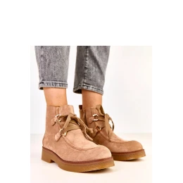 Elegantní a pohodlné dámské kotníčkové boty vyrobené z měkkého semišového ekologického kůže, které spojují eleganci s pohodlím každodenního nošení. Model je podšitý, co zajišťuje teplotu a pohodlí v chladnějších dnech. Kotníčkové boty s výškou 12 cm a kulatou špičkou se dokonale přizpůsobují noze, a 4cm podpatek zajišťuje stabilitu a pohodlí při chůzi. Dekorativní tkaničky dodávají botám módní charakter a decentní kouzlo. Boční zip usnadňuje obouvání a svlékání, a textilní vložka zvyšuje komfort užívání. Je to ideální volba pro ženy, které ocení pohodlí, teplo a efektní detaily v každodenních stylových kombinacích.