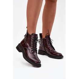 Dámské botky vyrobené z přírodní, lakované kůže jsou elegantní nabídkou na chladné dny. Nízký podpatek ve tvaru kostky zajišťuje stabilitu a pohodlí během nošení. Model má šněrování a praktický zip, co umožňuje snadné obouvání a ideální přizpůsobení noze. Vnitřek vyztužený podšívkou zaručuje tepelný komfort, díky čemuž se botky skvěle osvědčí v podzimně-zimní sezóně. Jedná se o univerzální obuv, která skvěle doplní jak každodenní, tak více formální stylizace.