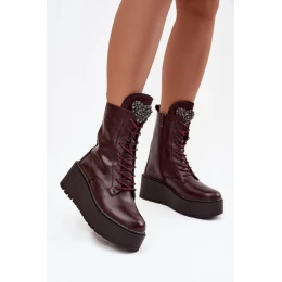Kotníkové boty značky Jezzi jsou nabídkou pro ženy, které ocení pohodlí spojené s módním vzhledem. Vyrobené z přírodní kůže, vynikají trvanlivostí a elegantním vzhledem. Umístěné na stabilní platformě s klínem, opticky prodlužují postavu a zároveň poskytují pohodlí během nošení. Vnitřek bot byl vyztužen, díky čemuž se perfektně hodí do chladnějších dnů podzimně-zimní sezóny. Model má šněrování a boční zip, co usnadňuje přizpůsobení a rychlé obutí. Zvláštní pozornost přitahují třpytivé krystalky umístěné na jazyku, skládající se do tvaru srdce, tento ozdobný detail přidává výjimečný šarm a zdůrazňuje jejich ženský charakter. Tato obuv skvěle padne jak do každodenních, tak do elegantnějších stylizací, stává se tak originálním akcentem v šatníku.