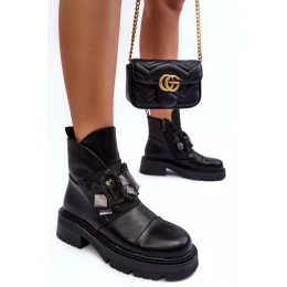 Módní dámské boty vyrobené z ekologické kůže. Na přední straně, na širokém elastickém pásku jsou dekorace. Plochá podrážka a platforma poskytnou stabilitu při každém kroku. Vnitřek je zateplený kožešinou. Model je uzavřen na zip. Špičky jsou zaoblené. Při výběru velikosti se řiďte tabulkou velikostí.